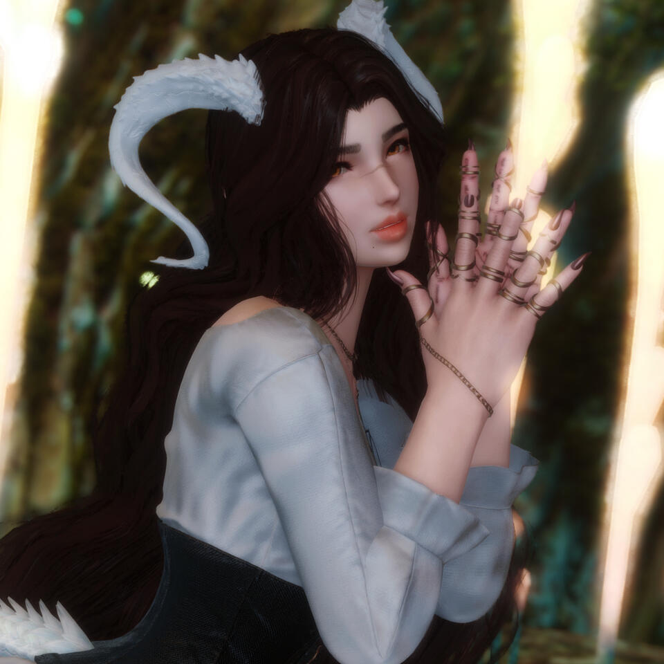 With a smattering of beautiful pearlescent scales, a tail that continuously betrays her inner thoughts, and two horns that sweep back in gentle curves Kallista appears to be part of the illusive Au Ra race but her coloring and doe-like gaze speak to what may not be a pure bloodline. It was this very thing, a thing out of her control, that lead to her start in life...Left out in the bitter cold in Coerthas on a clear night the babe had nearly froze to death but a mercenary on a hunt stumbled upon where she'd been placed in a hollow tree with the intent to be forgotten. Immediately he had tucked her within his jacket, rushing back to Ishgard to get her to warmth and safety.At first the babe had appeared to be merely a mixed Elezen, her skin unblemished and smooth. The couple, Ilharn and Vasati, were overjoyed and adopted the wee one into their previously childless home. They made the choice to move to Vasati's place of birth, Sharlayan, to give the girl the best chances in flourishing. Something that they had felt was not achievable within the destroyed Holy See.The idyllic joy was short lived.As Kallista grew she began to notice small changes to her skin, shimmering scales forming on her upper arms and hips. Overjoyed and in awe the child had shown her mother. It was in that moment the unbridled rage her adoptive mother held towards those she viewed as less came rushing to the surface.From there the Au Ra lived little better than a cage animal. Sheltered as much as possible to save face for her vain mother the girl was allowed few liberties, ones only given after Ilharn had fought for her. Her adoptive father was her hero and her solace.It was during this time that the young teen flourished in her mage training, her only escape from her guilded cage, and eventually she passed the trials of a mage. The small freedom was not without its own price for she found the hatred for mixed blood to be strong in others, often targeted for cruel panks and mistreated by her very own classmates.Despite this and despite the way her adoptive mother shunned her, Kallista retained a level of innocence and gentleness—two traits her father strived to protect for he could see the hope Kallista held. Hope that life would hold more for her. It was when listening to tales of his journeys, ones she'd heard countless times, that the idea to see the world—to escape her mother's controlling hold and the hatred of others—was born.It was after much arguing, much fighting, that the healer finally set foot on a ship bound for Ul'dah. Kallista was bright eyed, eager for an adventure. One that she'd soon realize was unlike anything she could have expected...
